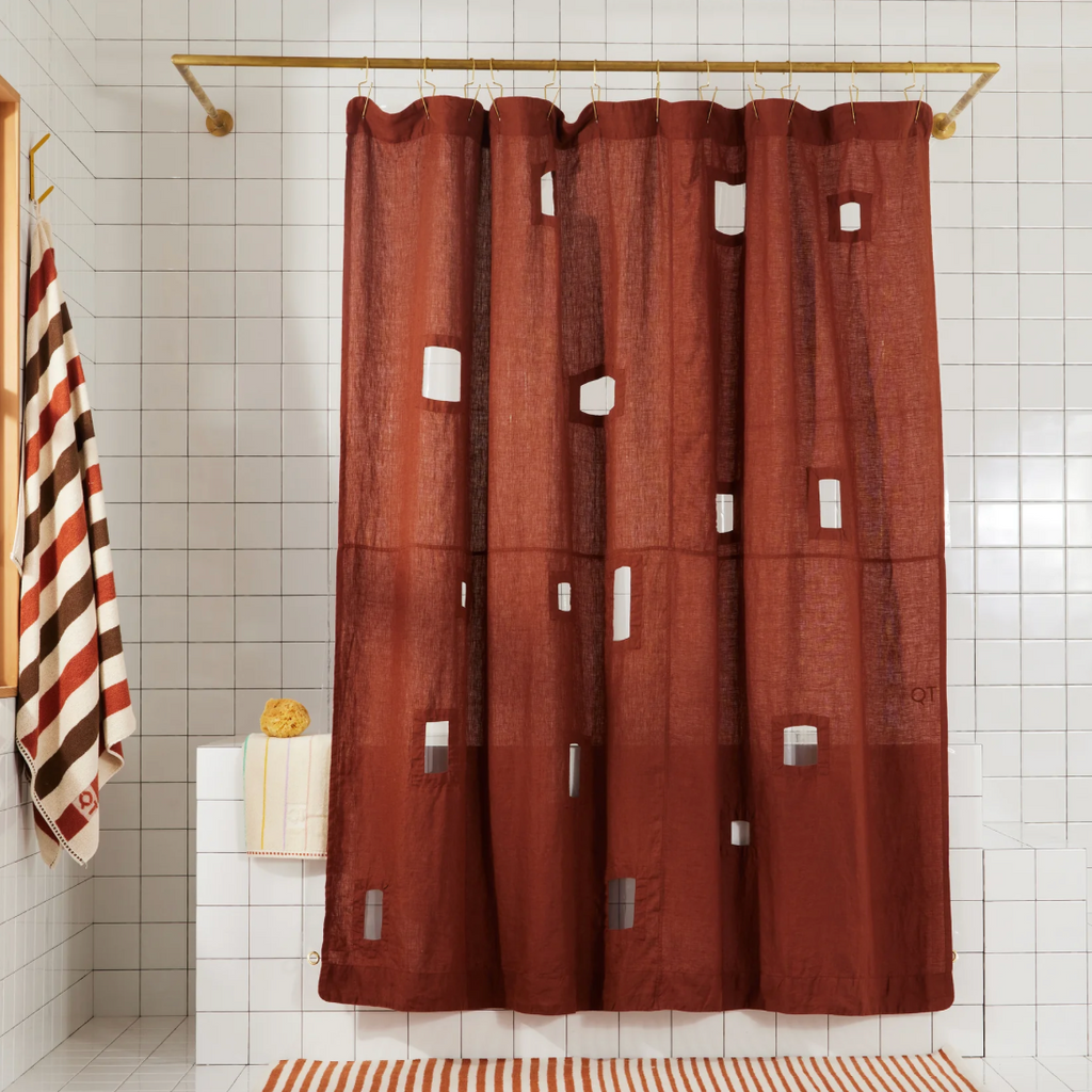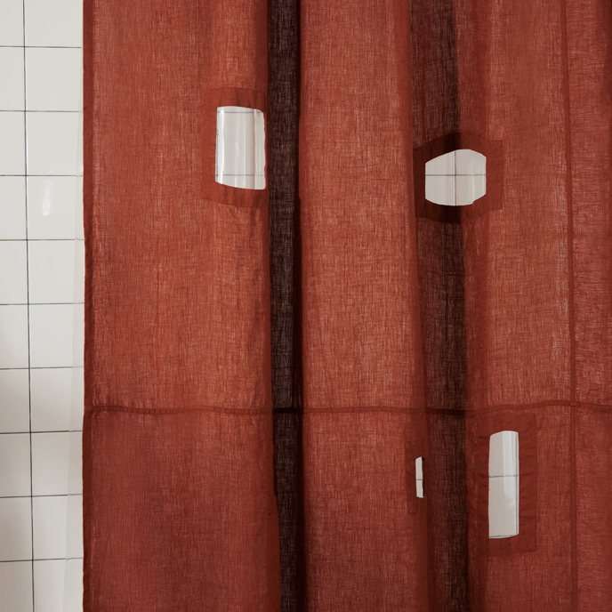 Meet the linen Ronchamp curtain—an homage to Le Corbusier’s French chapel, known for its unique windows and play of light. This curtain layers beautifully over any Sun Shower Liner for a look that’s uniquely yours. Made in small batches at a family-run factory in India. Hooks sold separately.